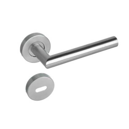 2 Manijas. 1 Perno. 2 Rosetas. 2 Bocallaves. 1 Llave allen. 2 Prisioneros para fijar el perno a la manija. Tornillos para la fijación a la puerta.