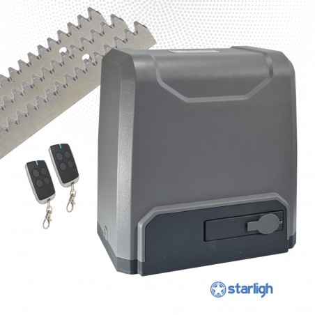 Motor robusto y duradero, fabricado con materiales de 1 calidad y diseñado con una estética elegante. Este motor se caracteriza por su sencillo mantenimiento y su andar silencioso. El motor está montado sobre rulemanes, lo que disminuye el desgaste de las piezas internas debido al bajo roce. Las cremalleras metálicas de 12mm de ancho y su base metálica completan un equipo de excelente calidad y eficiencia. El modelo ST-DZHI10NM es indicado para uso semi-industrial, múltiples aperturas y cierres o portones con peso por encima de 800/1000kg. El kit incluye 1 motor con central de comando, 3m. de cremallera metálica, 2 transmisores TXSTB.