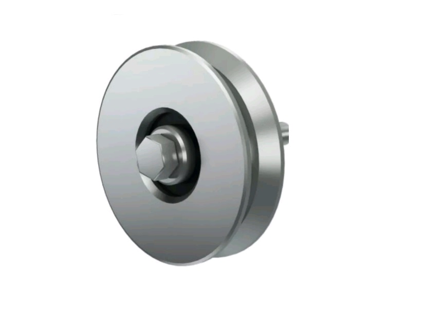 Rodamiento fabricado en acero templado, pista exterior de acero SAE 1045 laminado zincado. El perno para soldar fabricado en acero SAE 1020, con baño zincado. Se utiliza en portones exteriores o interiores, manuales o automáticos. Con ruleman. Para el guiado inferior de la rueda se utiliza un perfil tipo "V" de acero.
